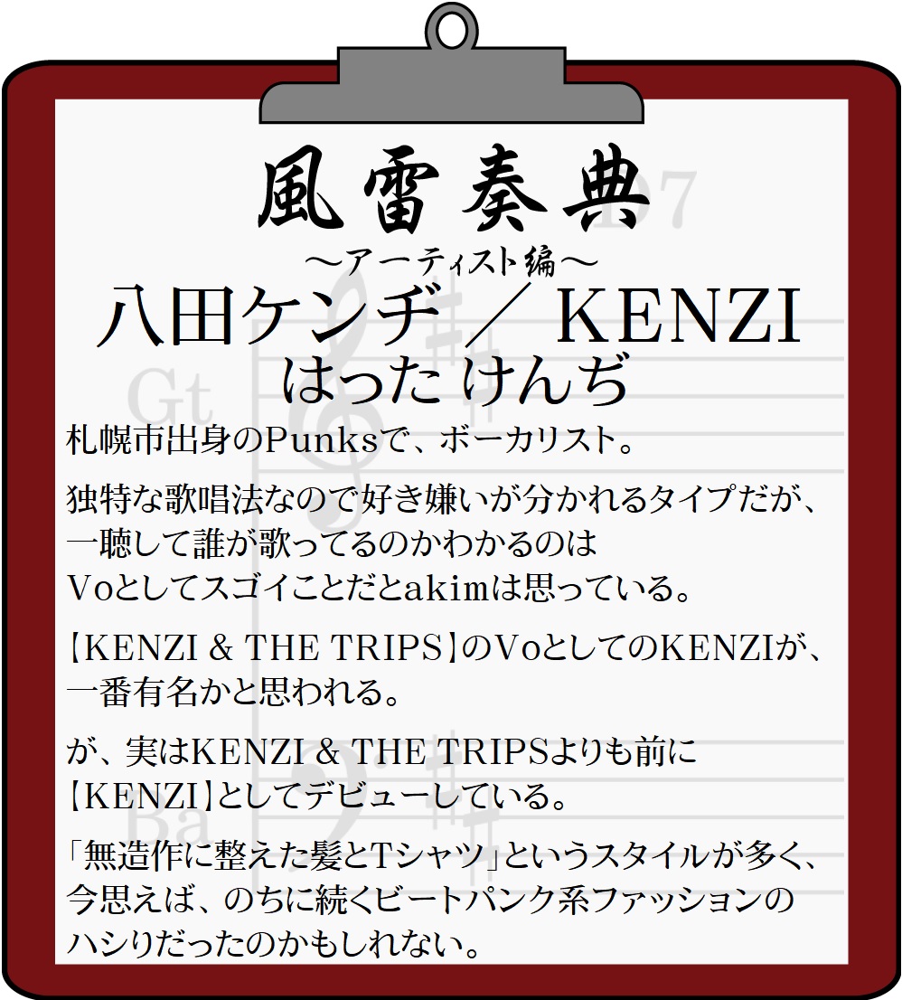 【KENZI & THE TRIPS】のVoとしてのKENZIが、一番有名かと思われる。